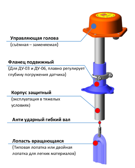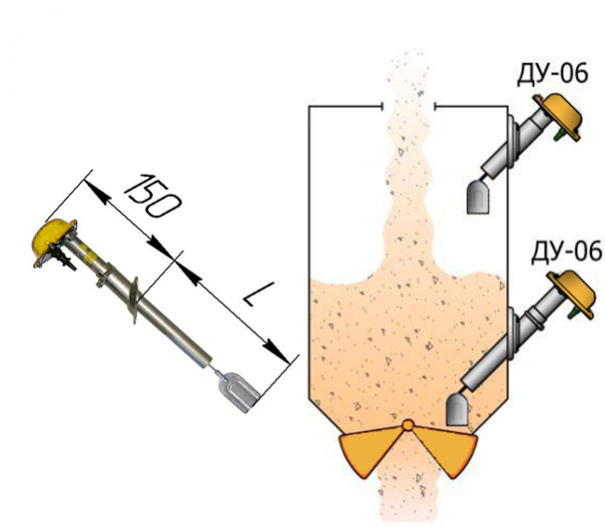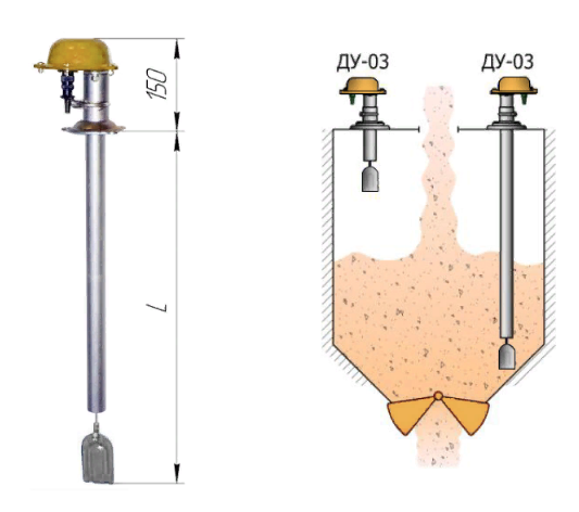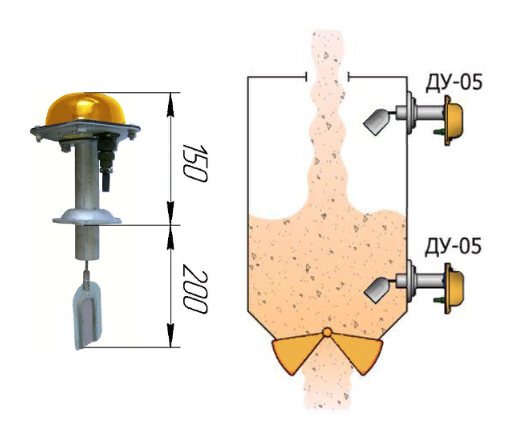 Ротационный датчик-реле уровня серии ДУ, в зависимости от условий установки может использоваться как сигнализатор заполнения, опустошения или уровня в силосах хранения, в промежуточных бункерах, технологических емкостях, практически со всеми сыпучими материалами.